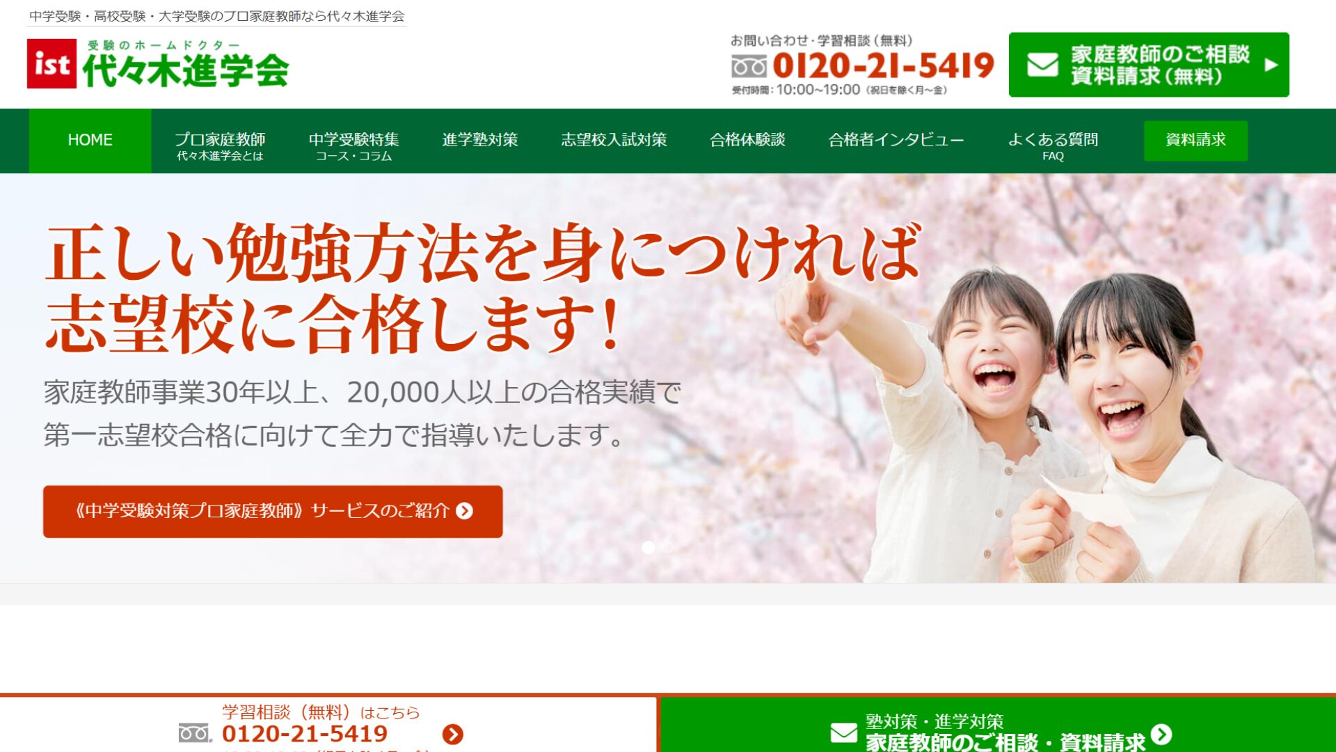 浮き沈みの激しい教育業界で、30年以上の支持を集める家庭教師センターの代々木進学会。算数の思考力問題・国語の記述問題など、家庭では指導しにくい分野を伸ばせる精鋭講師が多く登録していて、相談の70%がSAPIX生から寄せられています。