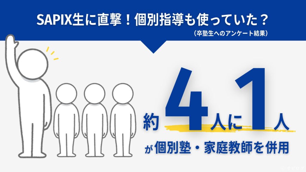つまりSAPIX生の4人に1人は個別塾・家庭教師を使っていたということ。それほど、SAPIXを補完するような個別指導を求める家庭が多いのです。