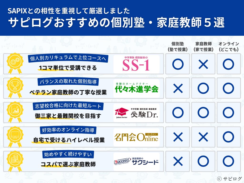 SAPIXと併用しやすい個別指導5選【元講師が厳選】