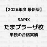 2026.03.27 校舎別実績 【2026年】SAPIXたまプラーザ校単独の合格実績まとめ コージ 記事に商品PRを含む場合があります。 SAPIXの公式HPで公開している合格実績は全校舎の合計のみ。そこで本記事では、SAPIXたまプラーザ校の1校舎だけの合格実績をご紹介します。 SAPIXの校舎選びにお役立てください! コージ 中学校名をクリックすると他校舎の実績と比較できます。 男/女/共学校名合格数 共愛光中学校3 共青山学院中等部4 共青山学院横浜英和中学校1 男浅野中学校9 男麻布中学校2 女浦和明の星女子中学校12 男栄光学園中学校4 女桜蔭中学校4 共桜美林中学校2 女鴎友学園女子中学校4 女大妻中学校3 共大宮開成中学校8 男海城中学校3 男開成中学校5 共開智中学校1 共開智所沢中等教育学校1 共開智望中等教育学校1 男海陽中等教育学校1 男学習院中等科1 女学習院女子中等科1 共神奈川大学附属中学校4 女カリタス女子中学校5 男暁星中学校1 共慶應義塾湘南藤沢中等部4 共慶應義塾中等部6 男慶應義塾普通部7 女恵泉女学園中学校1 女光塩女子学院中等科1 男攻玉社中学校3 女香蘭女学校中等科5 共國學院大學久我山中学校1 男駒場東邦中学校15 共埼玉栄中学校2 共栄東中学校42 共佐久長聖中学校47 共サレジアン国際学園世田谷中学校1 男サレジオ学院中学校18 女実践女子学園中学校1 女品川女子学院中等部1 共芝国際中学校1 共渋谷教育学園渋谷中学校5 共渋谷教育学園幕張中学校2 女淑徳与野中学校4 女頌栄女子学院中学校2 女昭和女子大学附属昭和中学校1 女女子学院中学校6 女白百合学園中学校2 男聖光学院中学校13 男成城中学校1 男世田谷学園中学校8 女洗足学園中学校9 男高輪中学校1 共多摩大学目黒中学校1 共中央大学附属横浜中学校17 男筑波大学附属駒場中学校3 女田園調布学園中等部2 共桐蔭学園中等教育学校14 共東海大学付属相模高等学校中等部1 女東京女学館中学校2 共東京学芸大学附属世田谷中学校1 共東京都市大学等々力中学校16 男東京都市大学付属中学校17 共東京農業大学第一高等学校中等部18 共桐光学園中学校1 女東洋英和女学院中学部4 女豊島岡女子学園中学校7 男獨協中学校1 共長崎日本大学中学校2 男灘中学校1 共西大和学園中学校3 共日本大学第三中学校2 共日本大学三島中学校1 女日本女子大学附属中学校2 共広尾学園中学校9 女フェリス女学院中学校7 女雙葉中学校1 女不二聖心女子学院中学校1 女普連土学園中学校4 共法政大学第二中学校5 男北嶺中学校1 男本郷中学校2 共三田国際科学学園中学校7 共宮崎日本大学中学校5 共明治大学付属世田谷中学校1 男明治大学付属中野中学校2 共明治大学付属八王子中学校1 共明治大学付属明治中学校2 共目黒日本大学中学校1 共八雲学園中学校1 女山脇学園中学校2 男ラ・サール中学校1 男立教池袋中学校1 女立教女学院中学校1 男立教新座中学校3 共早稲田佐賀中学校2 【PR】SAPIXと上手に付き合うには?知っておきたい「使い方」 中学受験では、正しい情報収集が大切。特にSAPIX生のご家庭は、塾に通うことと同じくらい「うまく塾を使いこなす」ことが重要です。 個別指導のSS-1では「合格を決める塾の使い方」という資料を用意しています。毎年約250人のSAPIX生を指導する個別指導塾が見てきた、SAPIX生の成績が伸び悩む理由・学習の要点をまとめた、SAPIXの攻略本というべき一冊です。 大手塾と併用して「最短で塾の成績を伸ばす」ことがSS-1のモットー。講師は全員社会人、SAPIXのテキストやカリキュラムを前提とした指導が受けられる、幅広いSAPIX生にオススメの個別塾です。資料ダウンロード・体験授業(どちらも無料)は、公式HPからお申し込みください! サピログ独占インタビューなぜSS-1はSAPIX生に人気?教室長に直撃して分かった“伸びる家庭”の共通点 あわせて読みたいSAPIX入室テストの全貌 出題傾向と対策法まとめ【2026年版】 あわせて読みたいSAPIXの年間費用は?全学年の試算結果リスト【2026最新版】 ABOUT ME コージ元SAPIX小学部講師Contact2013年からSAPIX小学部で国語を指導。SS麻布・桜蔭コースなど担当。2024年に退職しサピログを開設。