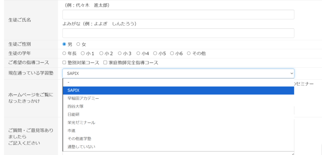 請求はこちらから。現在通っている学習塾は「SAPIX」を選んでください!