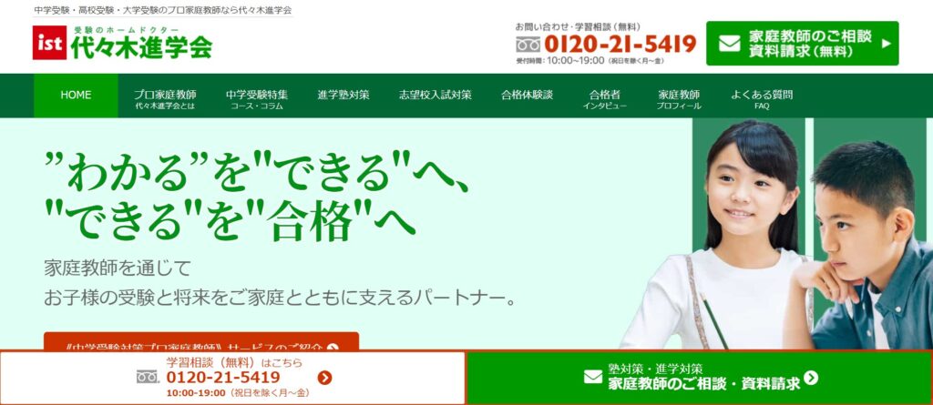 代々木進学会は1988年に創立、のべ2万人以上を合格に導いた家庭教師センター。SAPIXと同じく代々木を拠点に置き、首都圏各地の家庭で中学受験の指導に注力しています。
